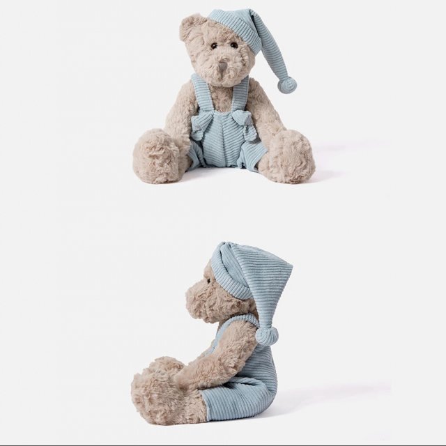 This cute teddy bear features a sweet expression, a soft pink hat, and cozy jumpsuits that make it look even more lovable. The high-quality plush fabric feels velvety smooth and is safe for kids, offering a snuggly experience every time. Its lightweight build and soft filling make it perfect for bedtime cuddles, imaginative play, or simply as a comforting friend during the day.